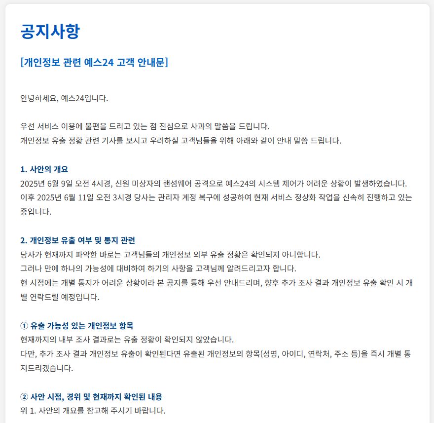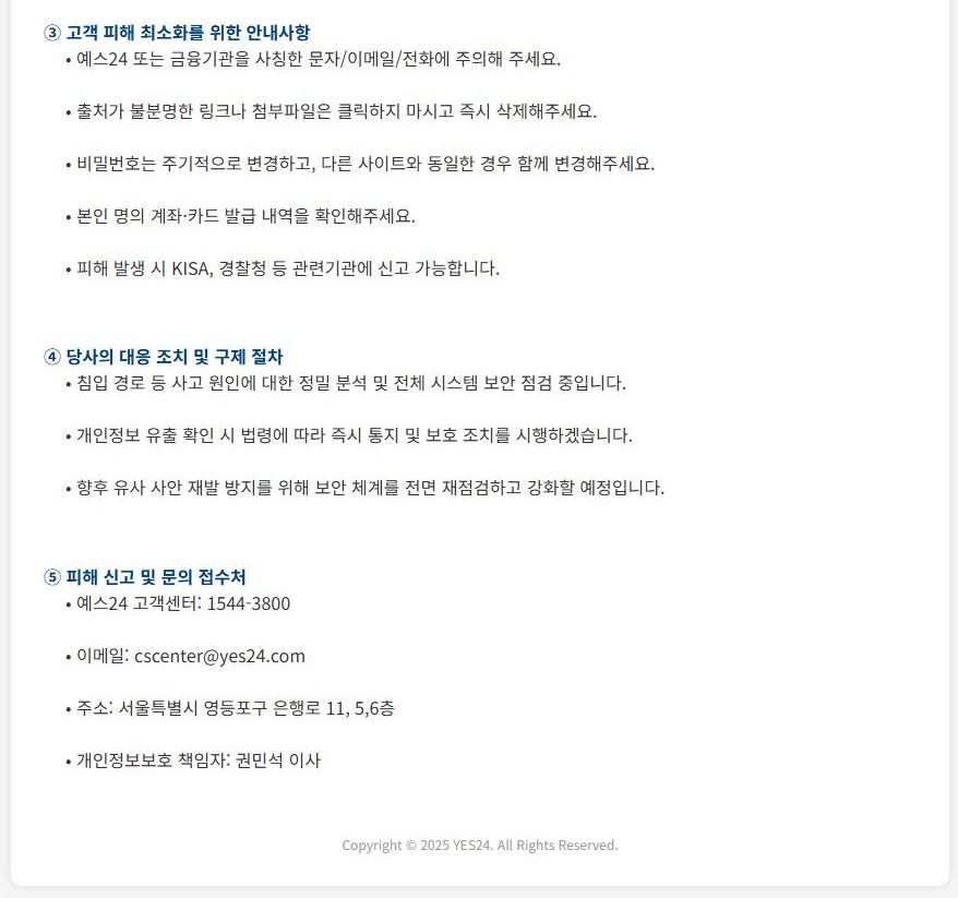 Yes24.com 해킹-개인정보유출 사건 업데이트 본문