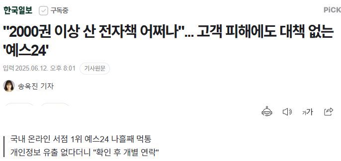 "2000권 이상 산 전자책 어쩌나"... 고객 피해에도 대책 없는 '예스24'