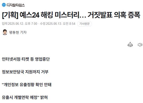 [기획] 예스24 해킹 미스터리… 거짓발표 의혹 증폭