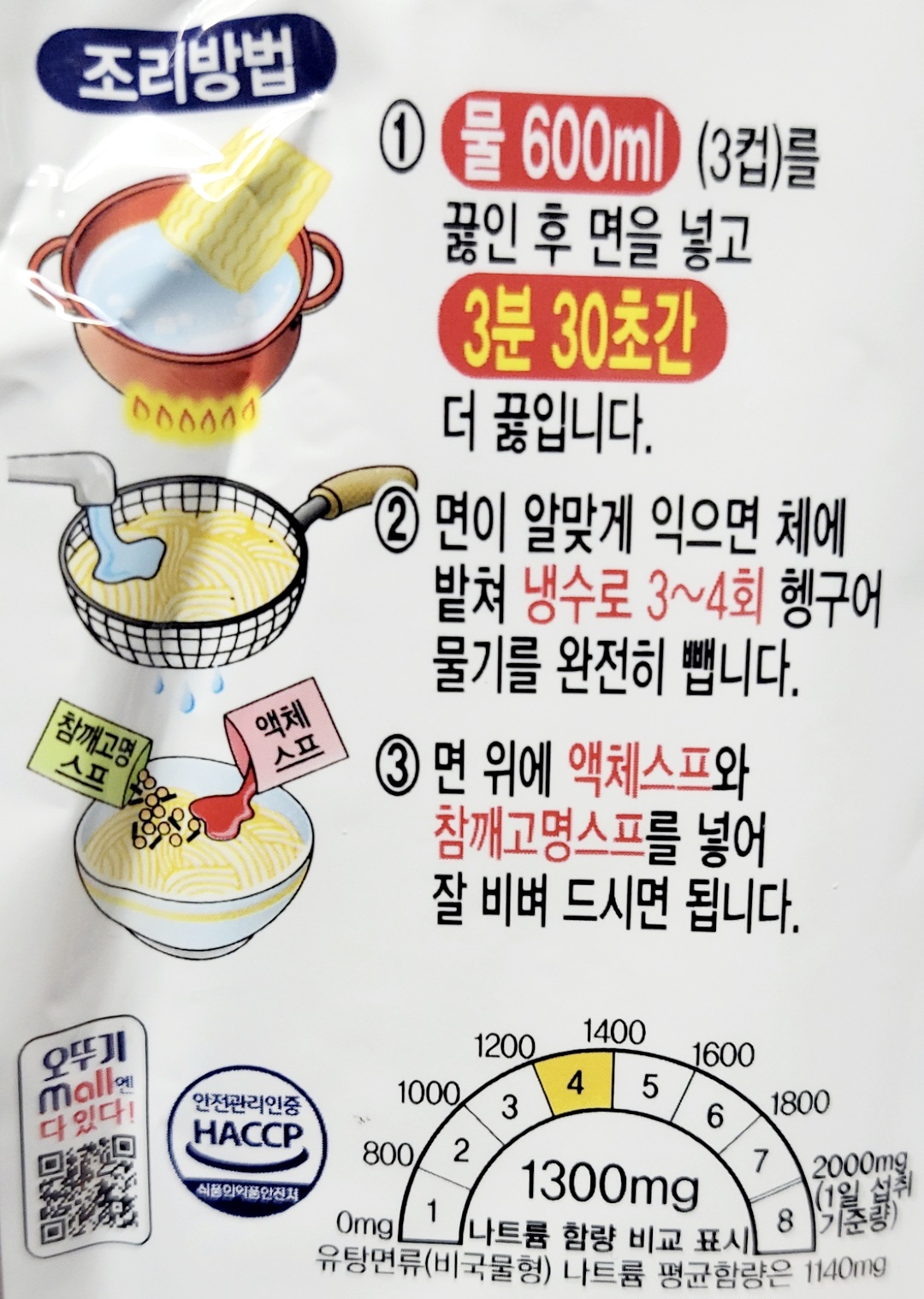 나트륨은 1300mg 입니다.