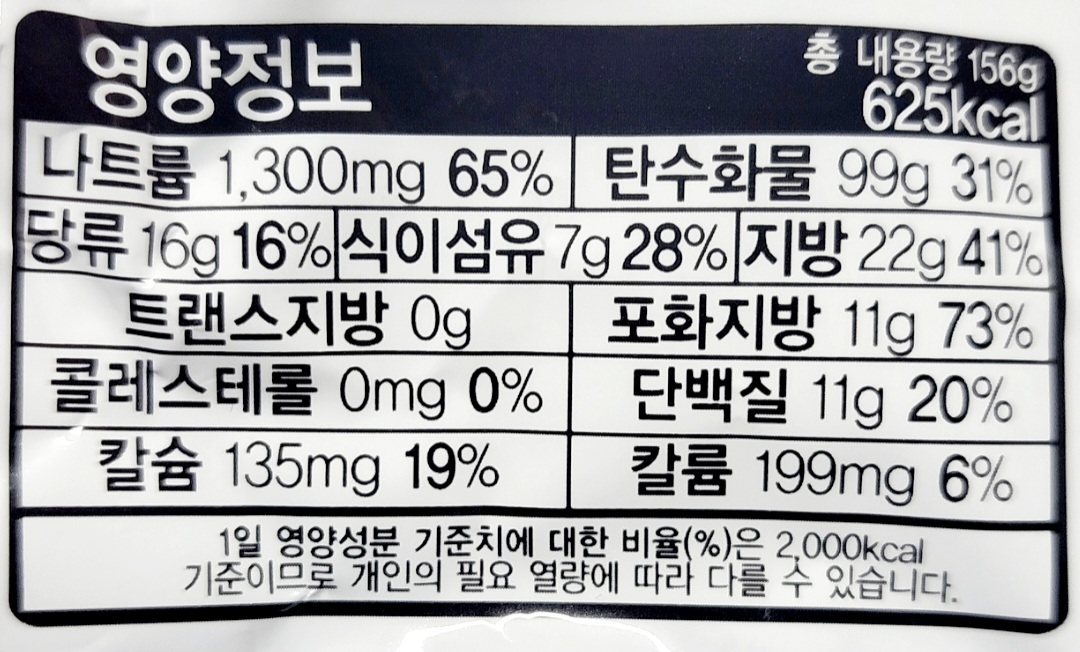 1인분 155그램이고 열량은 625칼로리입니다.