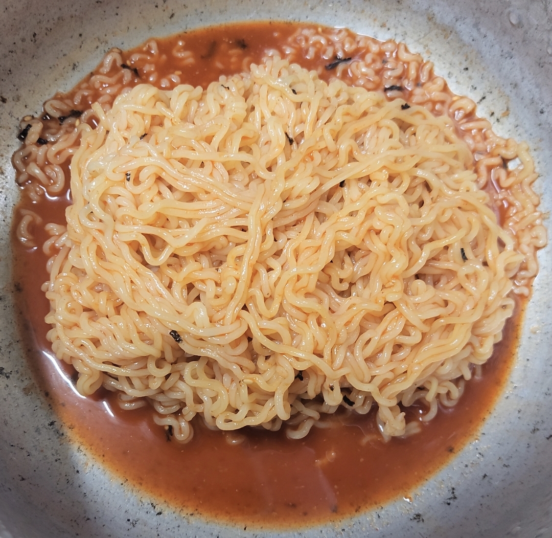 앞서 면만 비볐을 때는 매운 스프가 여유있었지만 이번에는 남지 않습니다.