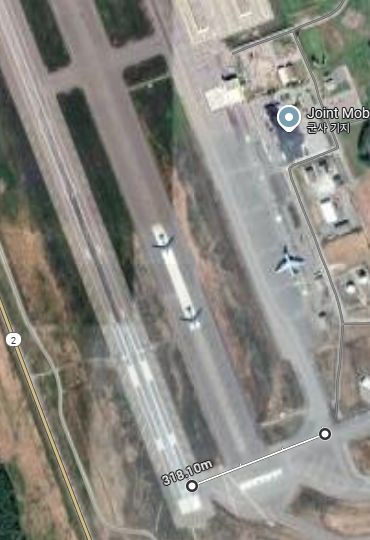 (이번에 전투기들이 유도로에 진입해 사고기가 1대, 이륙에 성공한 기체가 1대 있었는데, 그 유도로의 길이가 우리나라 공군기지 활주로 길이에 육박합니다. 주활주로는 그 두 배 길이입니다. 유도로의 폭도 국내 군비행장하고는 비교할 수 없이 넓습니다1)