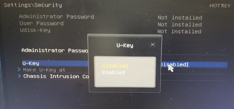 security 항목에는 u-key 또는 u-disk key 만들기(이걸 꽂아야 메인보드 바이오스를 지나 부트로더로 넘어가는 전용 sw열쇠같은 것이라는 듯)