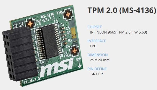 MSI TPM2.0 Module enables a deeper and broader level of security coverage.