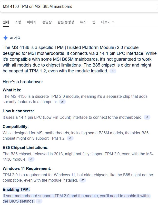 🔎 MS-4136 TPM on MSI B85M mainboard: Google 검색