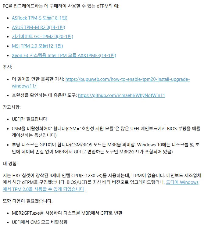 구형 인텔 4세대 i7-4790K, i7-5820K PC에서 Windows 11 윈도우11에 필요한 TPM2.0 모듈 설치해보고 판단하기