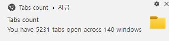 즉, 컴퓨터 리소스의 한계가 아니라 크롬 자체 한계가 탭 5천 개 정도인 것 같다.