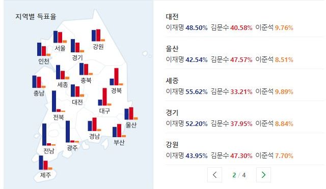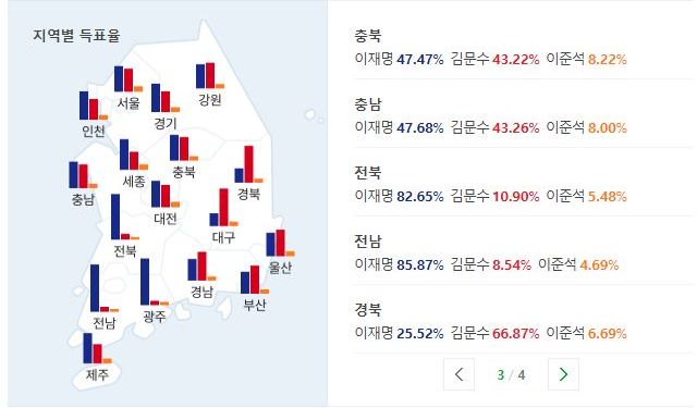 제 21대 대통령선거 개표결과: 지역별 득표율