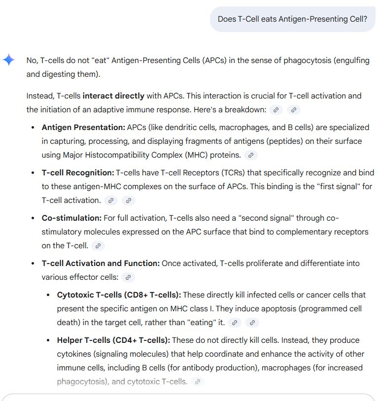 - 몸의 면역세포가 항원을 제시하면서도 그 항원을 제시받은 면역세포에게 공격받지 않고 임무를 계속하려면 당연히, "이것이 당신이 만나면 때려잡아야 하는 항원입니다. 잘 확인하세요" 와 함께 "하지만 나는 같은 편입니다. 나 때리지 마세요" 신호도 같이 주는 식이어야 할 것이다. [본문으로]