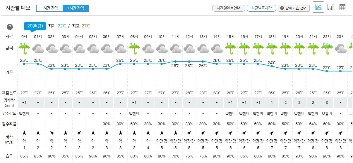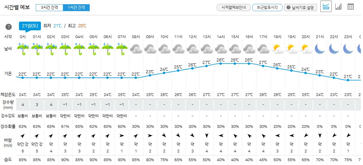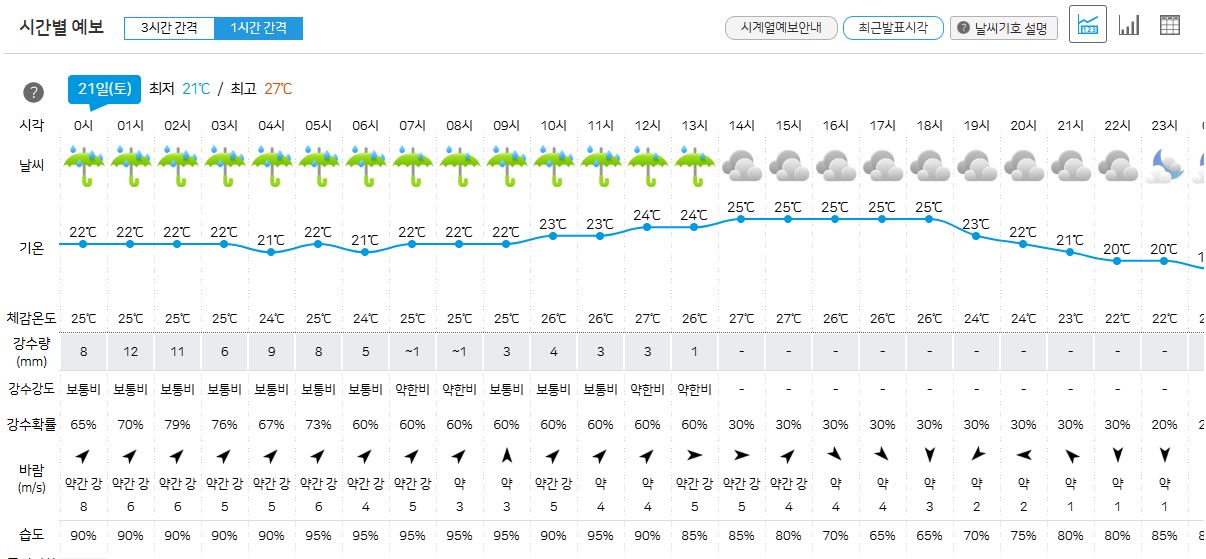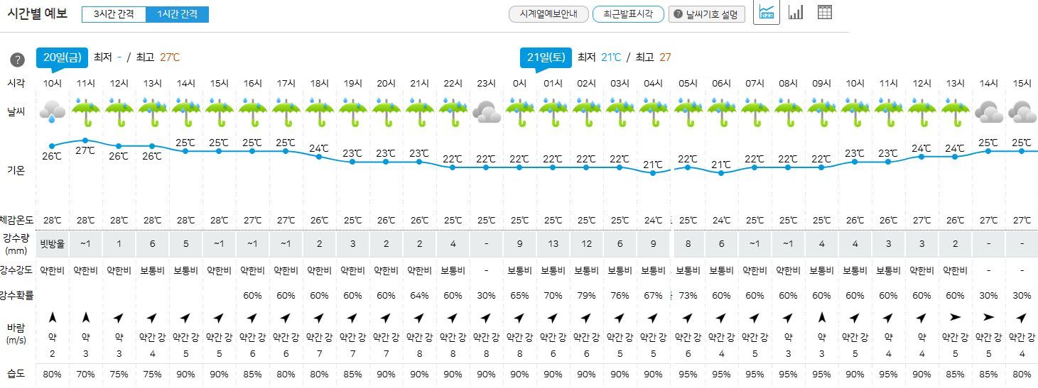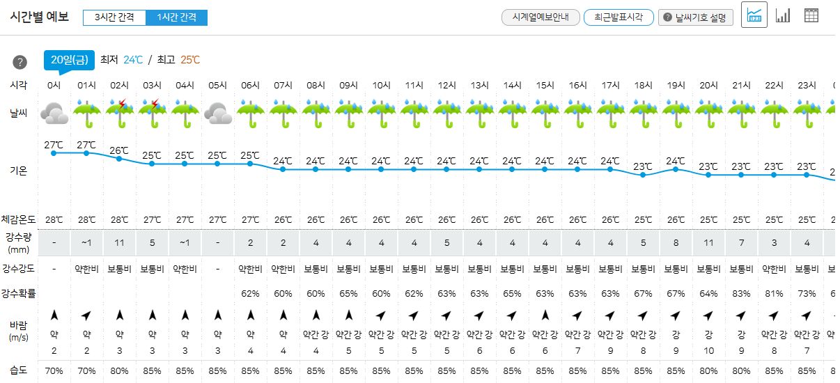 서울에서는 서해바다에 가깝고 호우경보가 내린 경기도 김포 바로 옆인 강서, 양천지역을 보았습니다. 다른 지역도 링크따라가서 보면 기록을 확인할 수 있습니다.