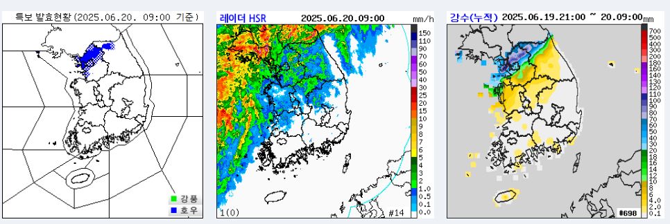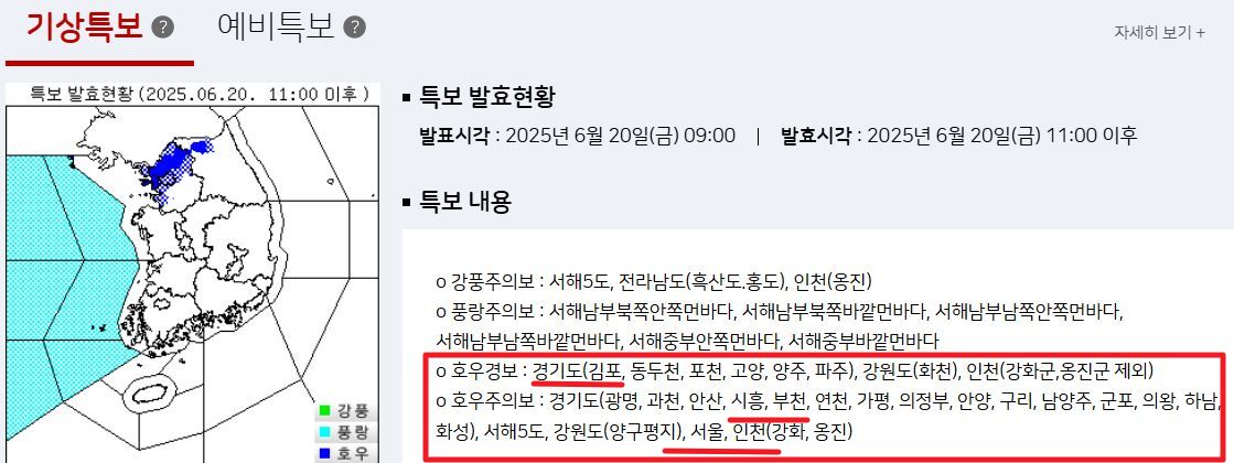2025.6.20.금. 자정쯤부터 ~ 오전 10시 정도까지. 날씨. 기상청 예보/장마/강수량 기록/ 호우경보 본문