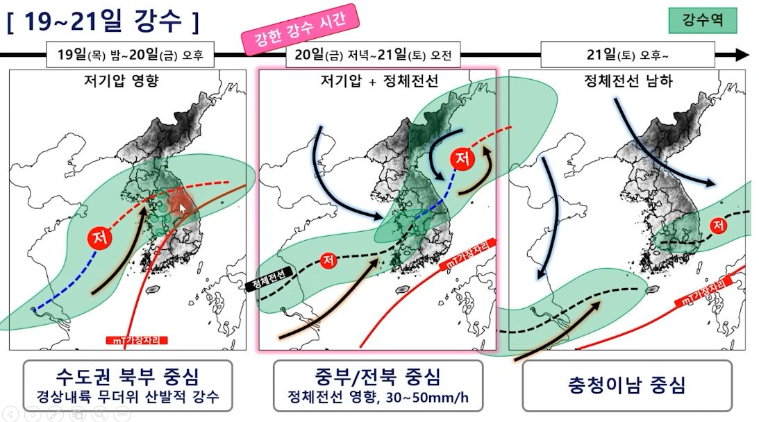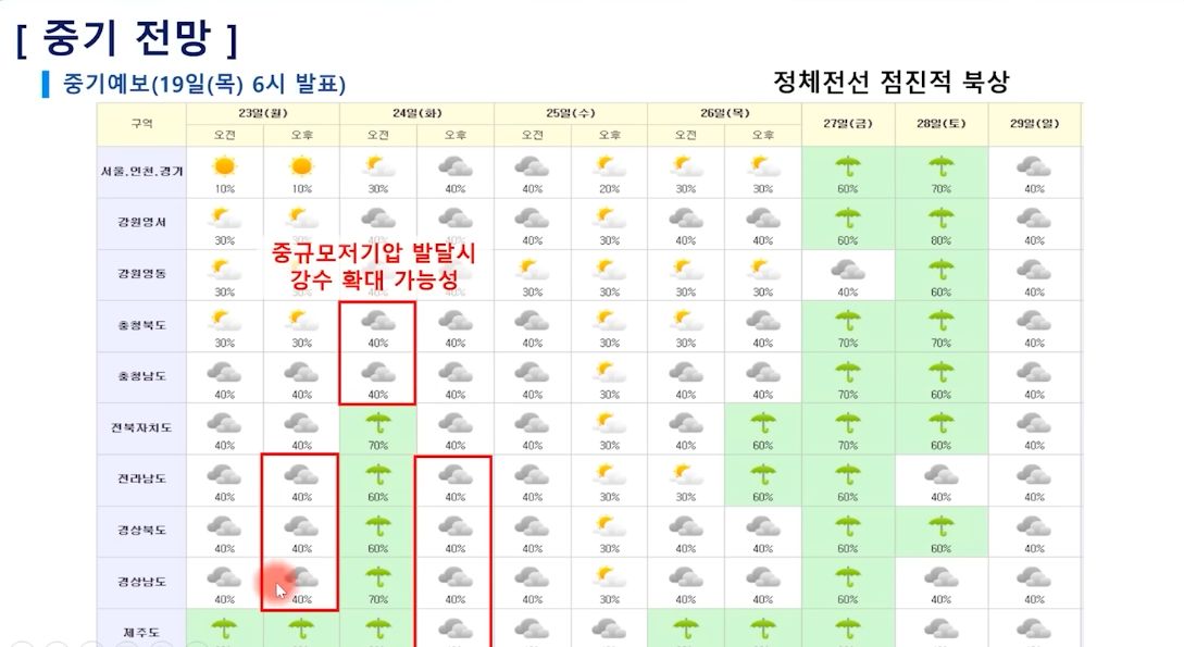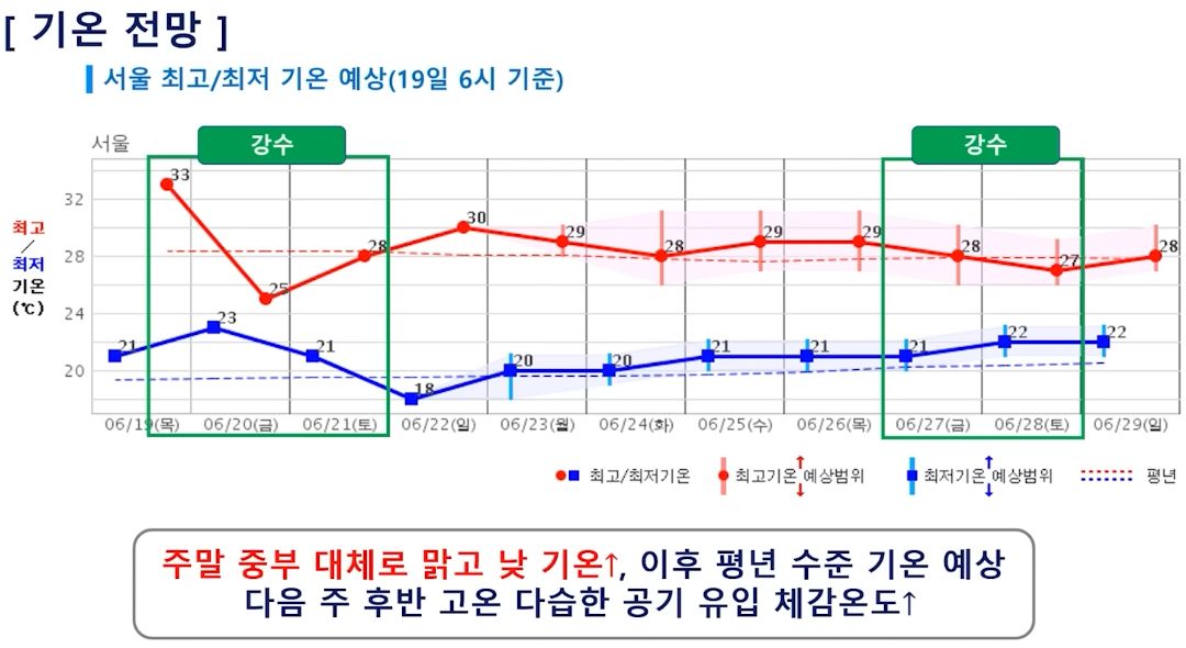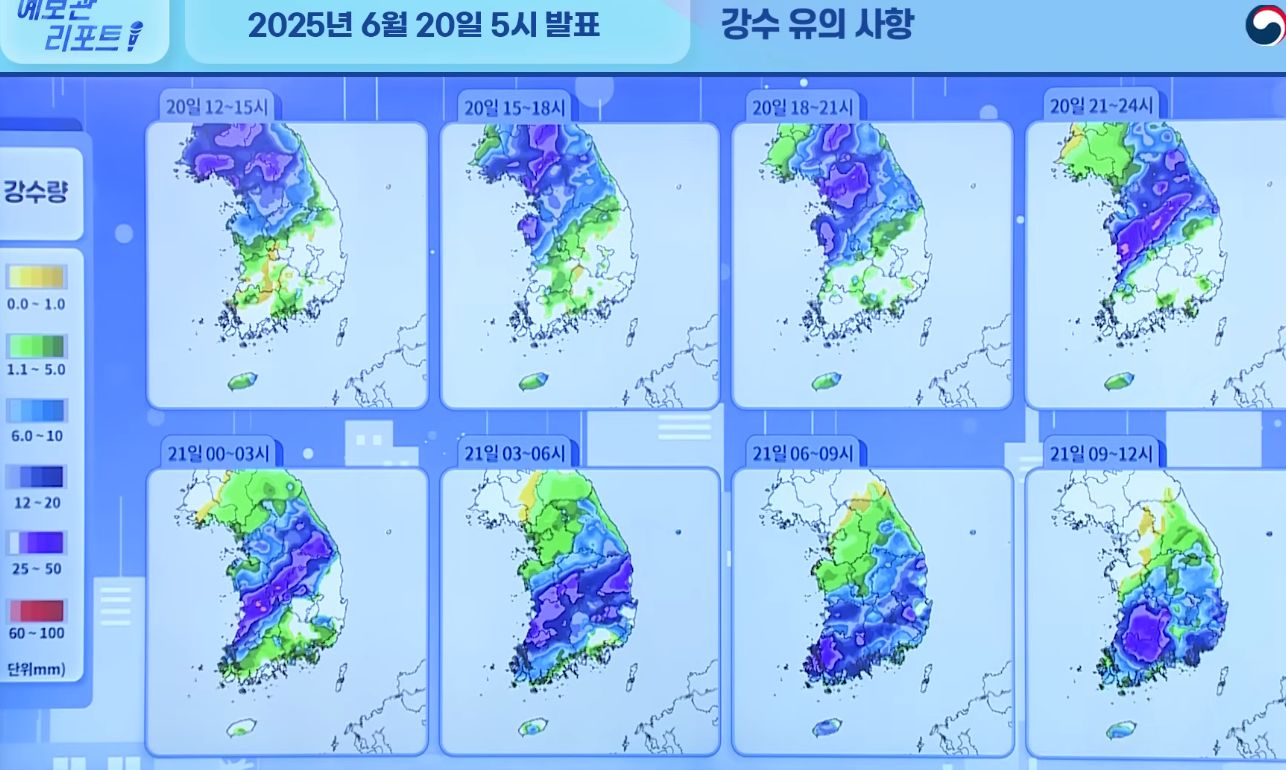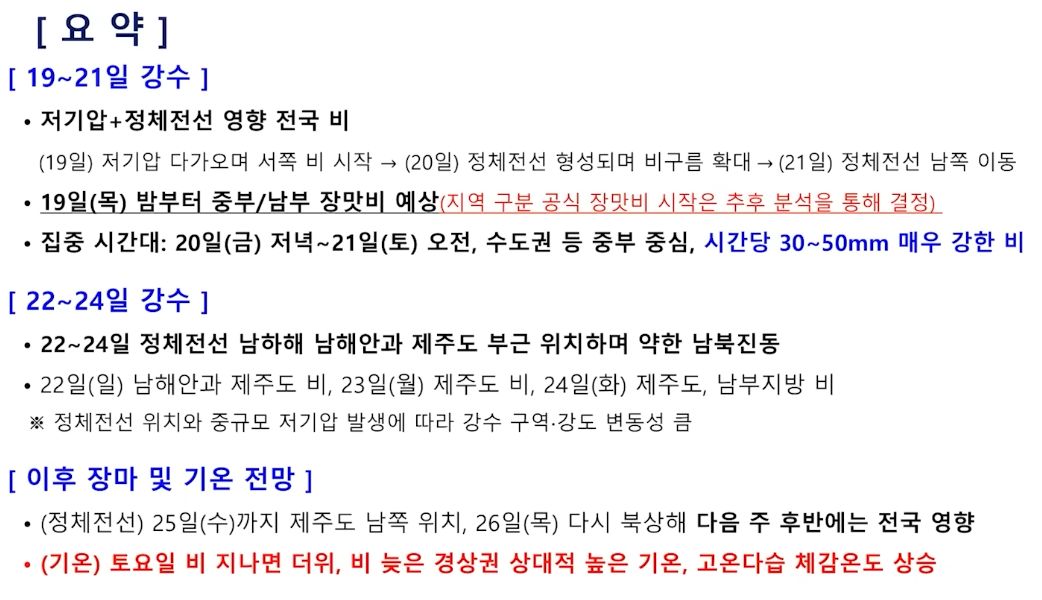 고비는 금요일 저녁부터. 경상권은 폭염 뒤 늦게 비. 시작부터 강하다 (2025년 6월 19일 기상청 예보브리핑)