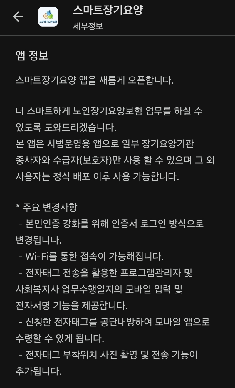 국민건강보험공단 스마트장기요양앱, 안드로이드 9 파이부터만 사용가능/:/ 행정잘못 개선희망점 본문