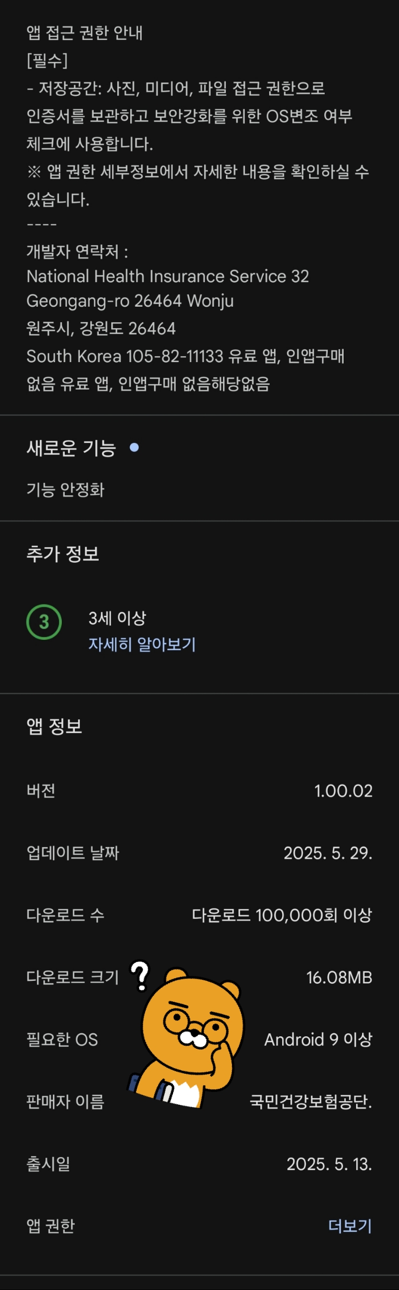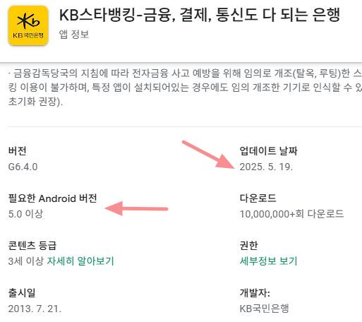 지금 구글 플레이스토어에 올라온 공단앱 최신 업데이트 버전은, 2025년 5월 29일자로, 안드로이드 9 OS 부터만 지원합니다.