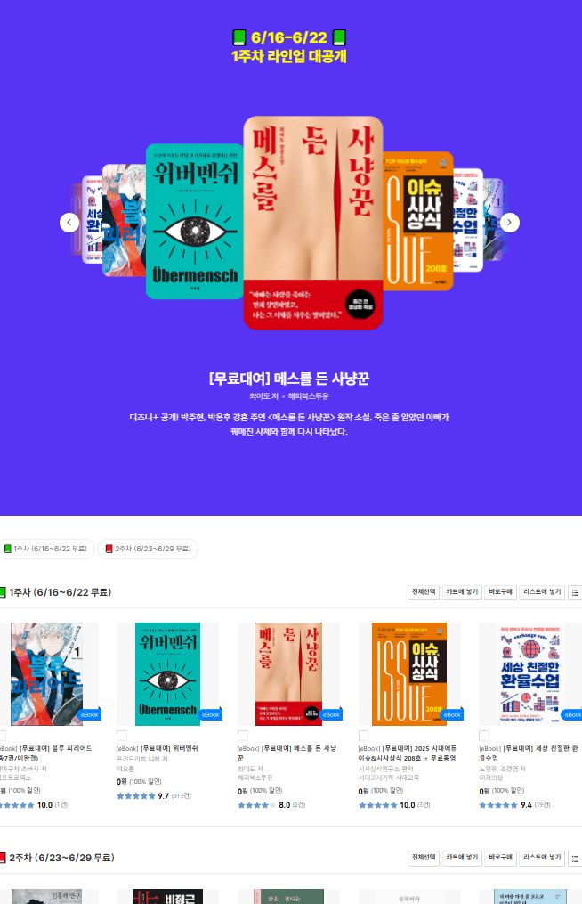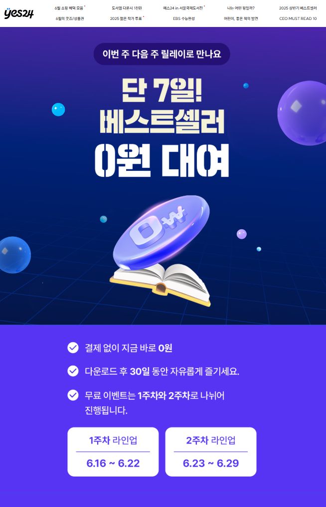 예스24닷컴(yes24.com) 베스트셀러 5권, 30일 무료대여(~2025.6.22. 오늘까지) 본문