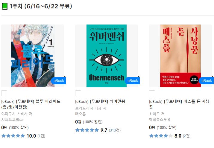| 알라딘, 초단기 무료대여 만화책(코믹스 전자책) (0) | 2025.06.27 |