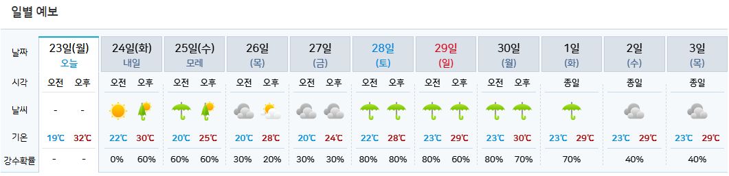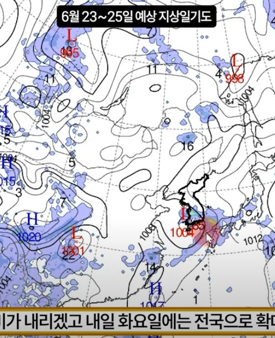 2025.6.23.기상청 일기예보: 내일과 모레 비, 그리고 주말에 다시 장마 본문