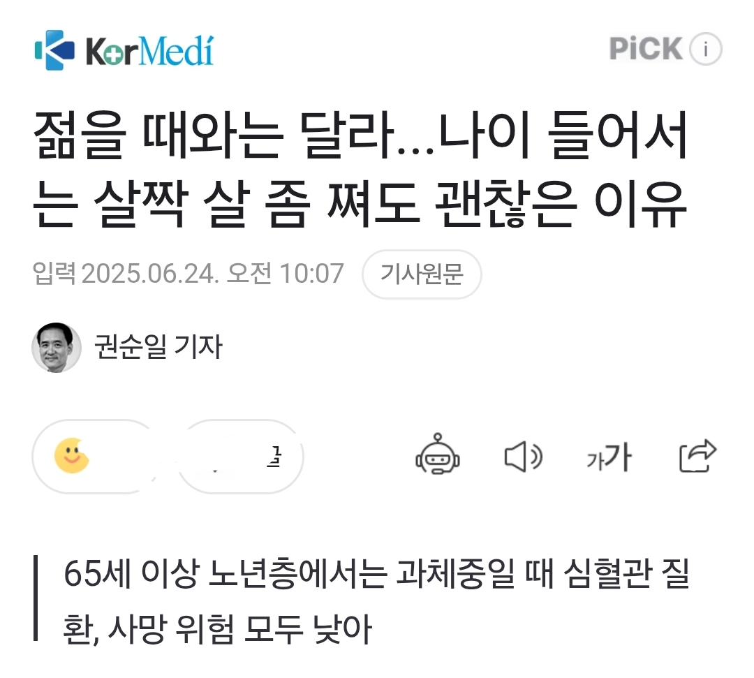 나이들면 살짝 과체중이 좋아? 더 생각해야 할 것 본문