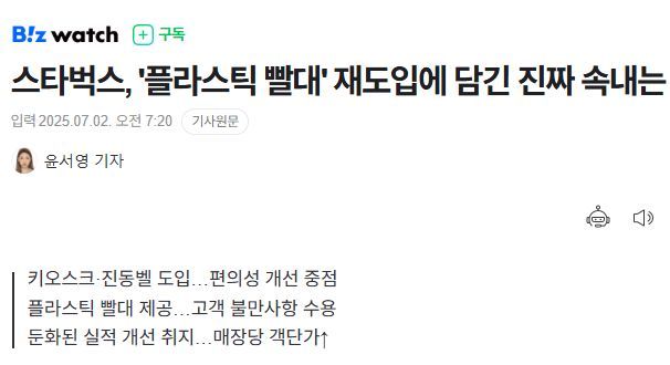 "빨대가 눅눅해" 스타벅스 7년 만에 플라스틱 재도입