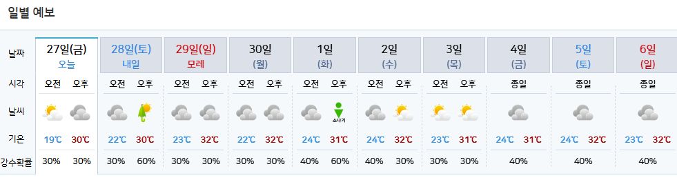 이 그래프는 아래 기상청 주간 예보에서 나온 것입니다.