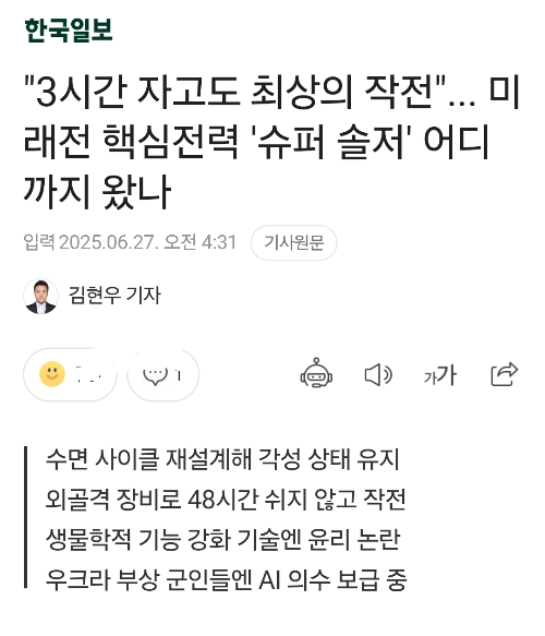 "3시간 자고도 최상의 작전"... 미래전 핵심전력 '슈퍼 솔저' 어디까지 왔나