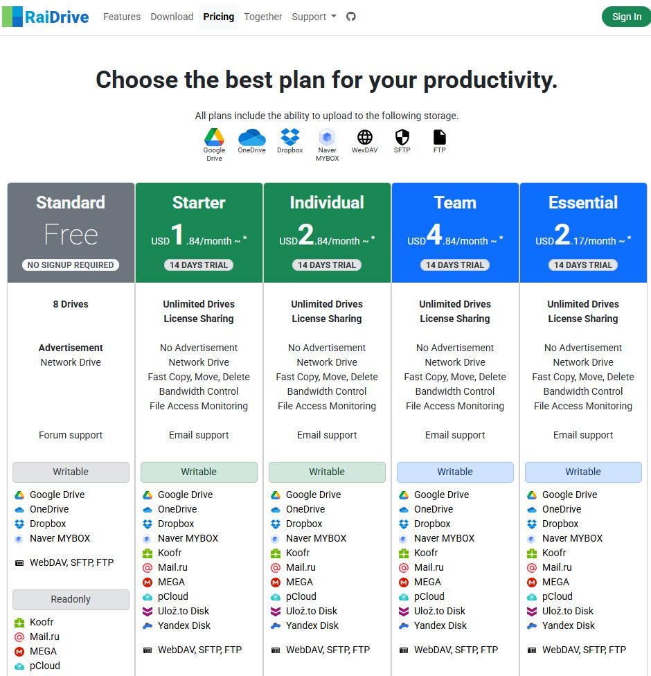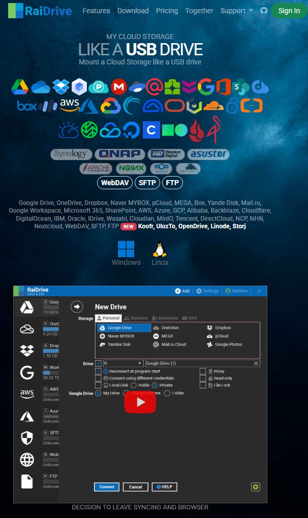 RaiDrive - Mount a Cloud Storage like a USB drive