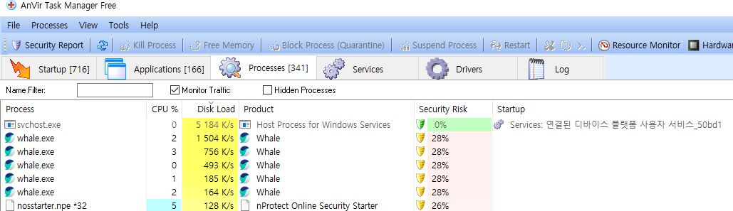 AnVir에서 보여준 리포트 화면인데,