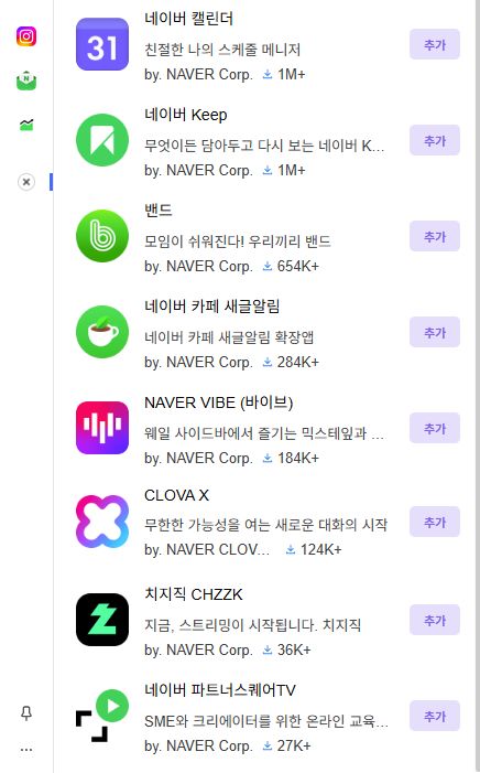 그러고 보니, 네이버도 자기가 미는 AI 챗봇이 있었지 않나? 그게 사이드바에 왜 없나 했는데, 클로바 X(CLOVA X)가 그것. (+)눌러 네이버 앱에서 골라 추가하면 됩니다.