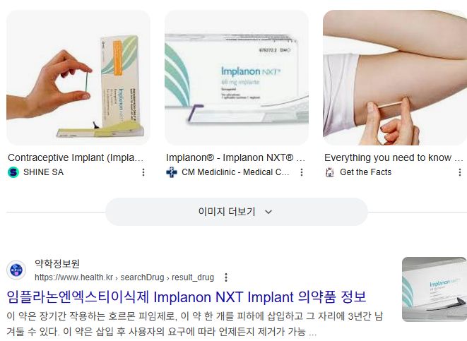 * 이런 종류의 대표적 상품인 임플라논에 대한 약학정보원 안내: