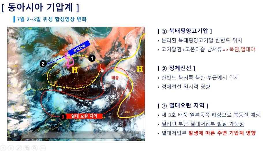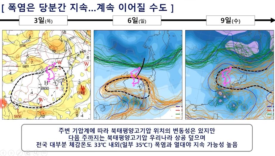 중부지방은 아직! 금요일 비. 전국 폭염과 열대야 지속 (2025년 7월 3일 기상청 예보브리핑)
