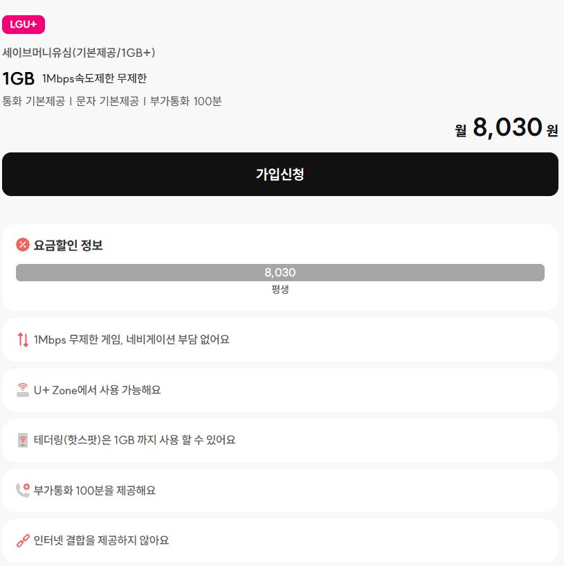 월 8030원짜리 알뜰폰 요금제다.
