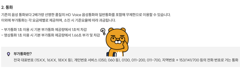 (이 부분도 요금제마다 다를 수 있으니 확인해봐야 할 때도 있습니다.