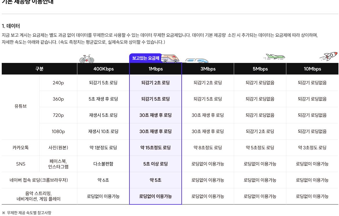 - 어느 요금제 설명페이지에는 이 부분에 오타같이 느껴지는 것도 보였는데, 내가 관심있는 요금제가 아니라서 굳이 전화걸어 어느 쪽이 맞는지 물어보지는 않았다. [본문으로]