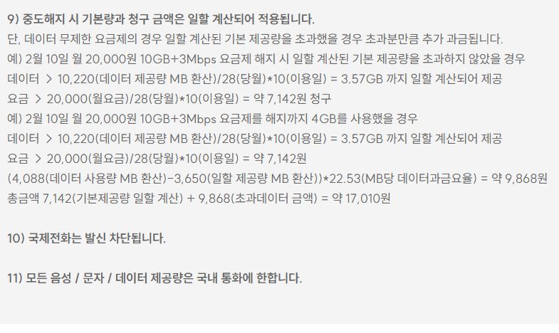 11번 음성/문자/데이터 기본제공량은 모두 국내통화에만 적용.. 이것도 마찬가지.4