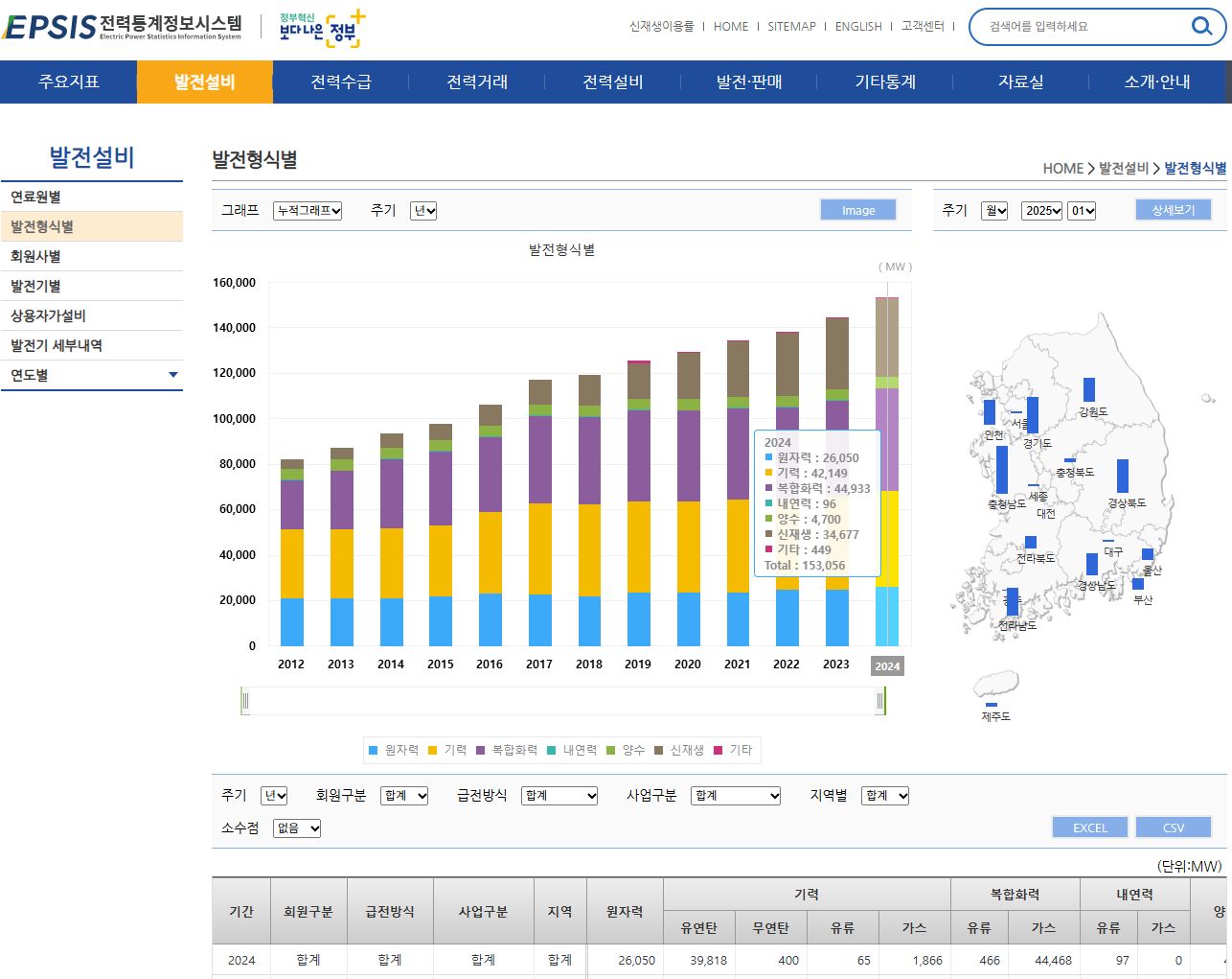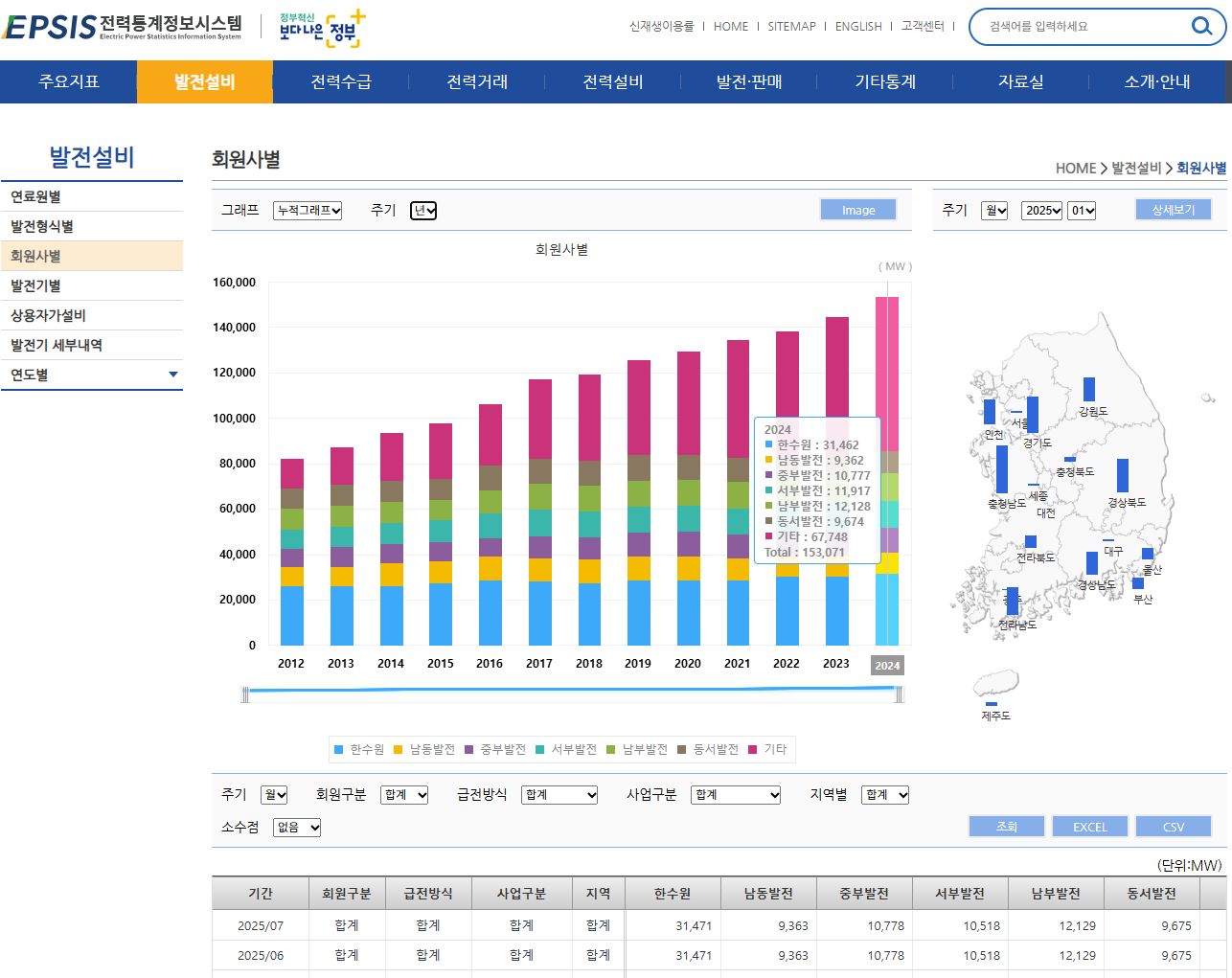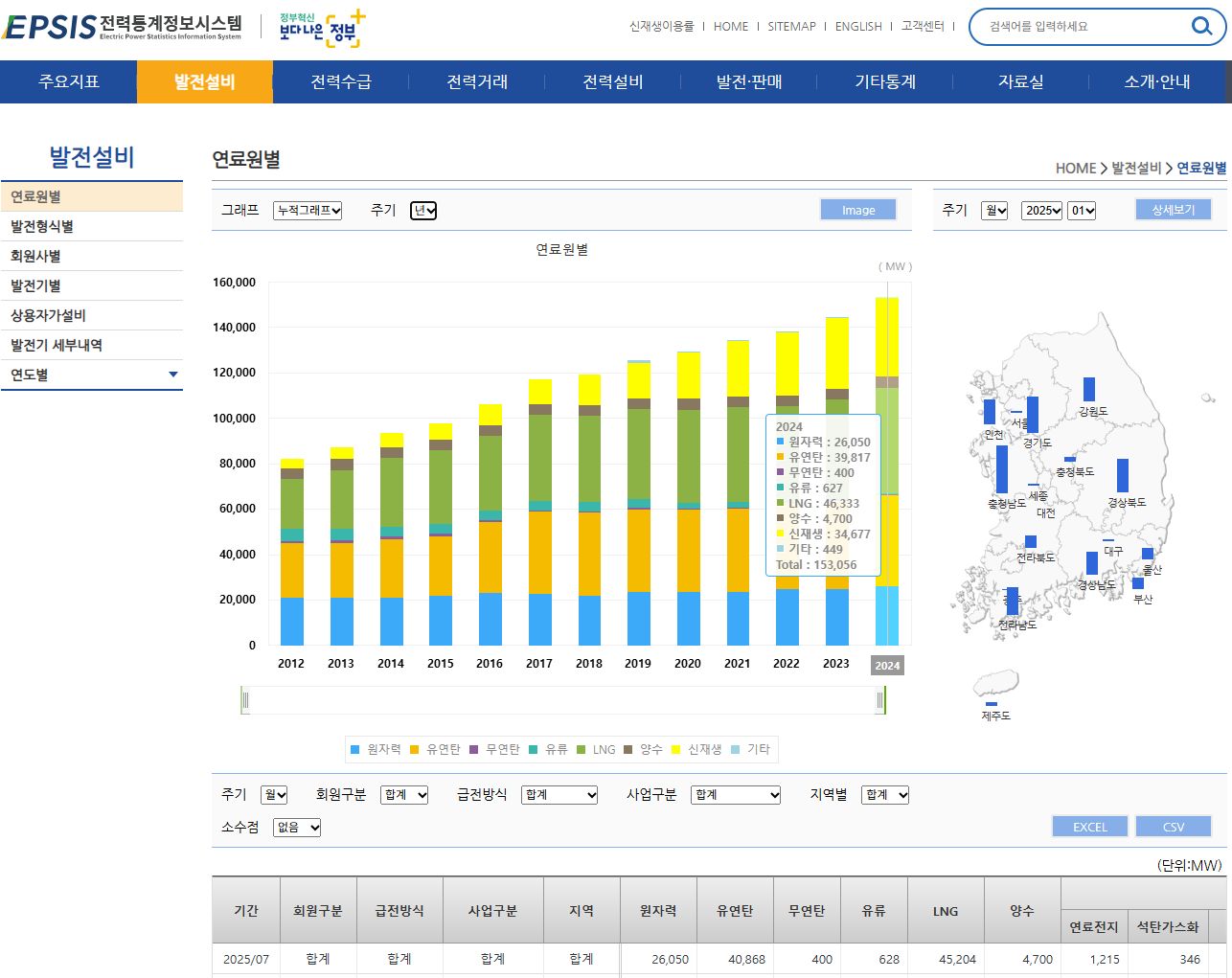 2025.7.7. 실시간 전력수급 그래프 (한국전력거래소), 2012년부터의 발전설비 구성 그래프 본문