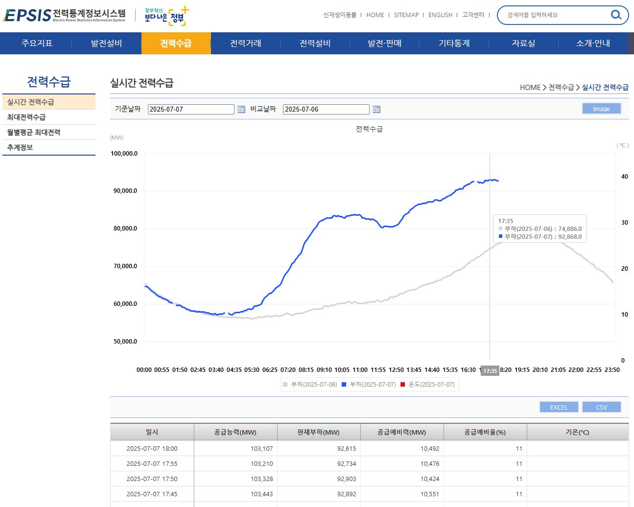 공급능력 103GW, 현재부하 92.6GW, 공급예비력 10.5GW