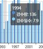 1961~2024년 그래프는 나옵니다. 전국 평균 강수량 및 강수일수.