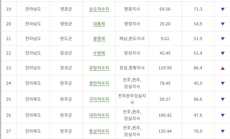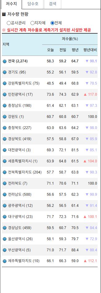 전남과 광주도 자체 저수지도 있지만 섬진강수계와 전북수계에서 물을 받아먹고 있다는 뉴스를 봤는데, 종합적으로는 50%대입니다.