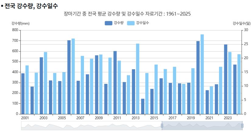 기상청 통계는 아직 2025년분은 그래프에 반영되지 않았습니다.