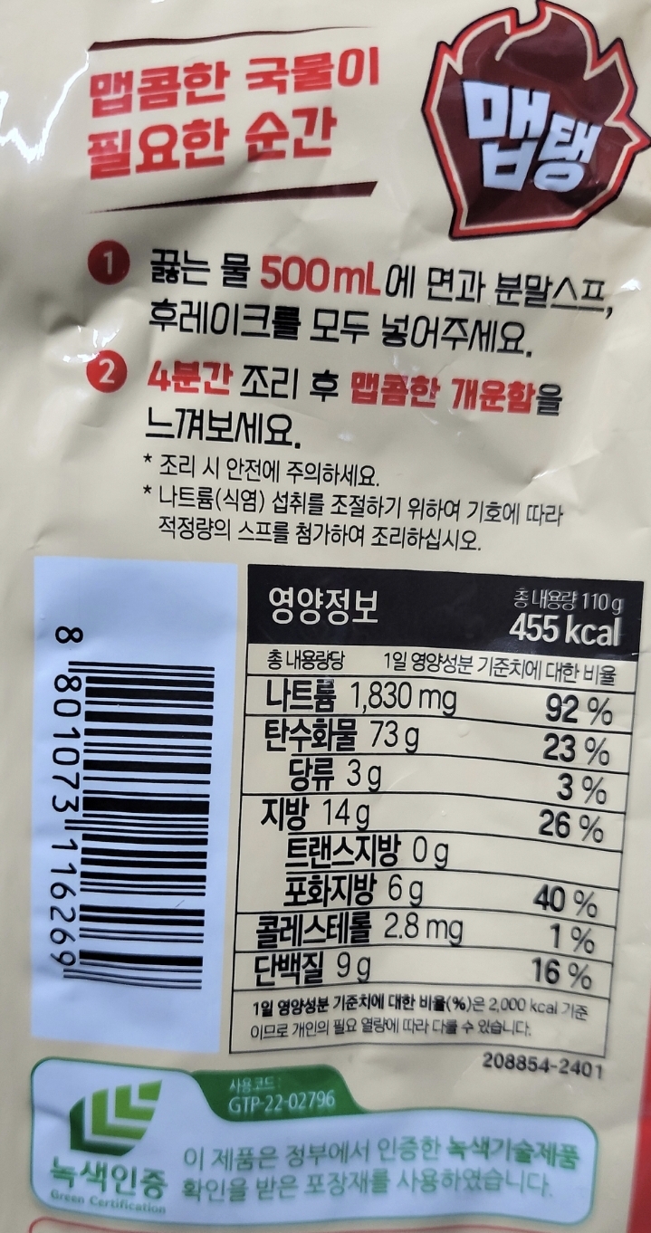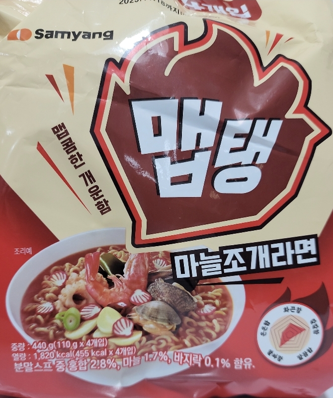 나트륨과 스코빌.. 짠맛과 매운맛이 강합니다. 면도 중간은 가고. 그래서 맛은 기본은 합니다.