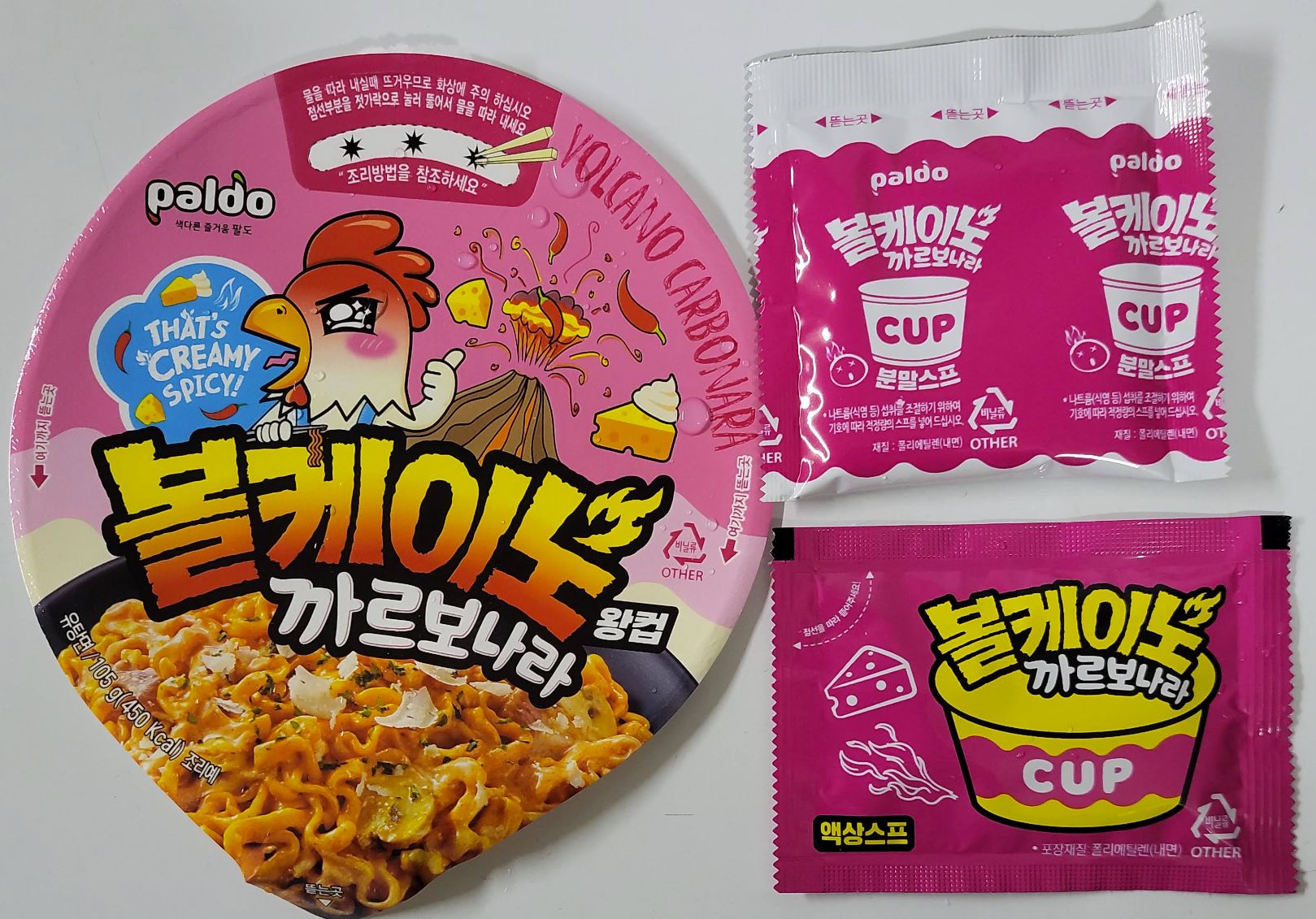 뚜껑과 스프. 하나는 꾸덕한 소스. 하나는 치즈가루같은 것.