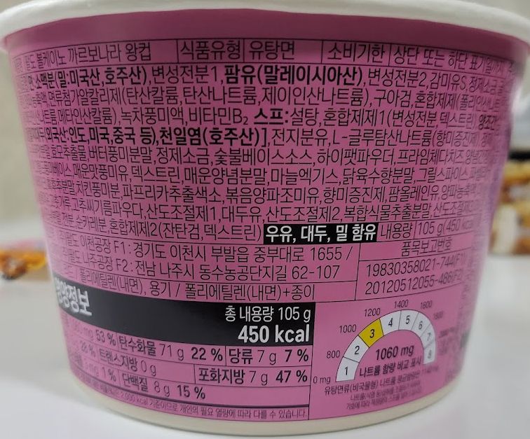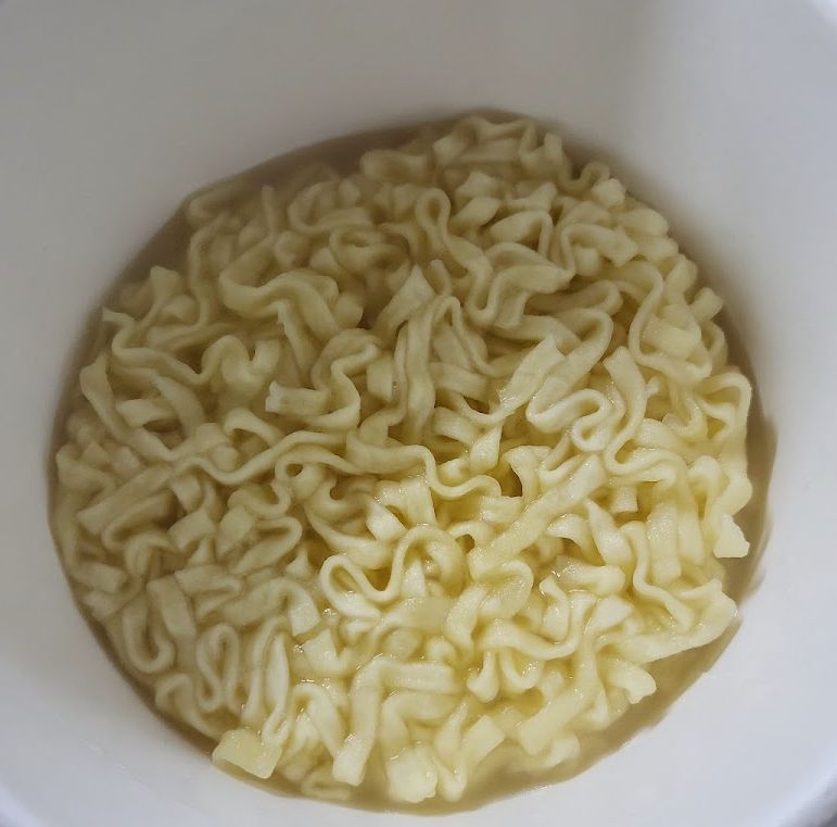 찬물을 선높이 정도너 선을 살짝 넘을 만큼 붓고 전자레인지에 5~6분해도 상관없었다. 이 가감은 해보고 결정하기.