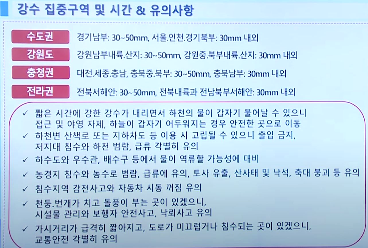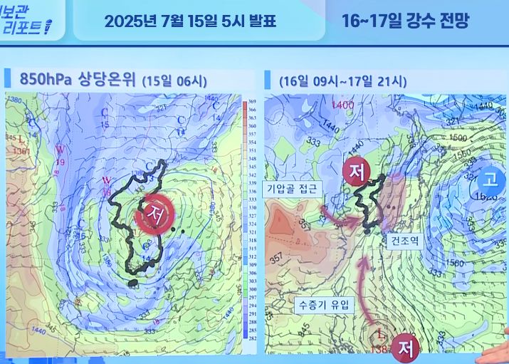 2025.7.16.수. ~7.17.목 중부지방 곳에 따라 폭우가 올 수도 있다는 예보. 주말까지 비 본문