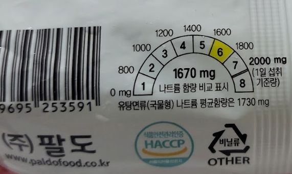 나트륨 함량은 1670mg