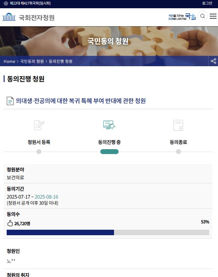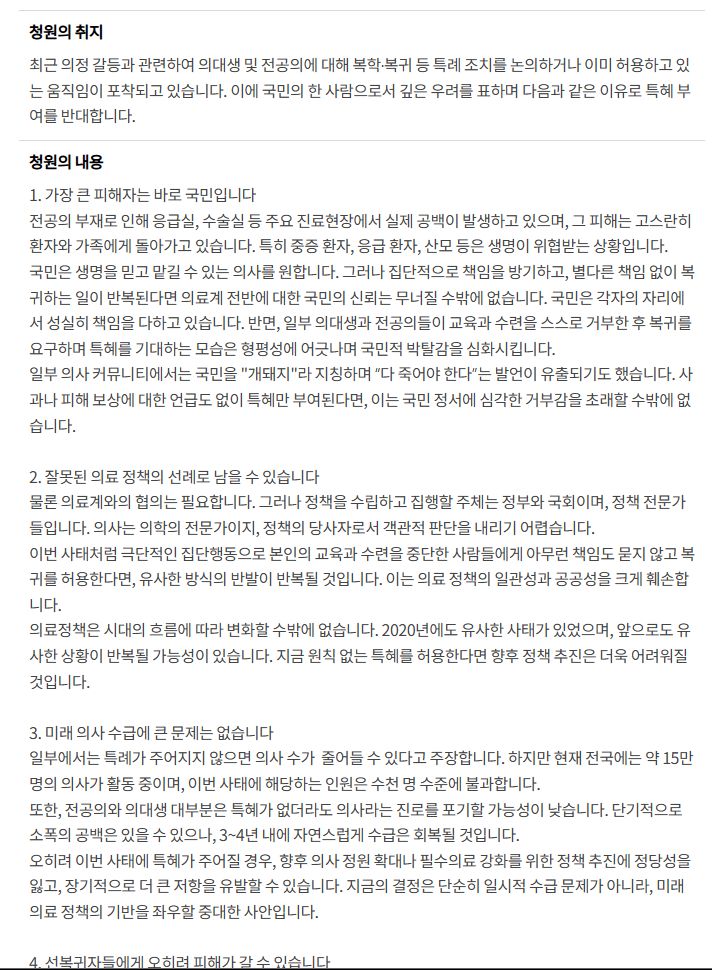 (국회전자청원) 의대생·전공의에 대한 복귀 특혜 부여 반대에 관한 청원 URL 본문