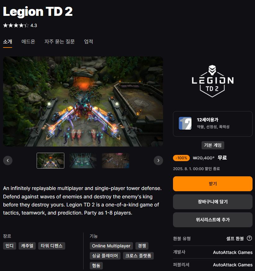 (에픽게임즈 무료게임) Legion TD2 본문