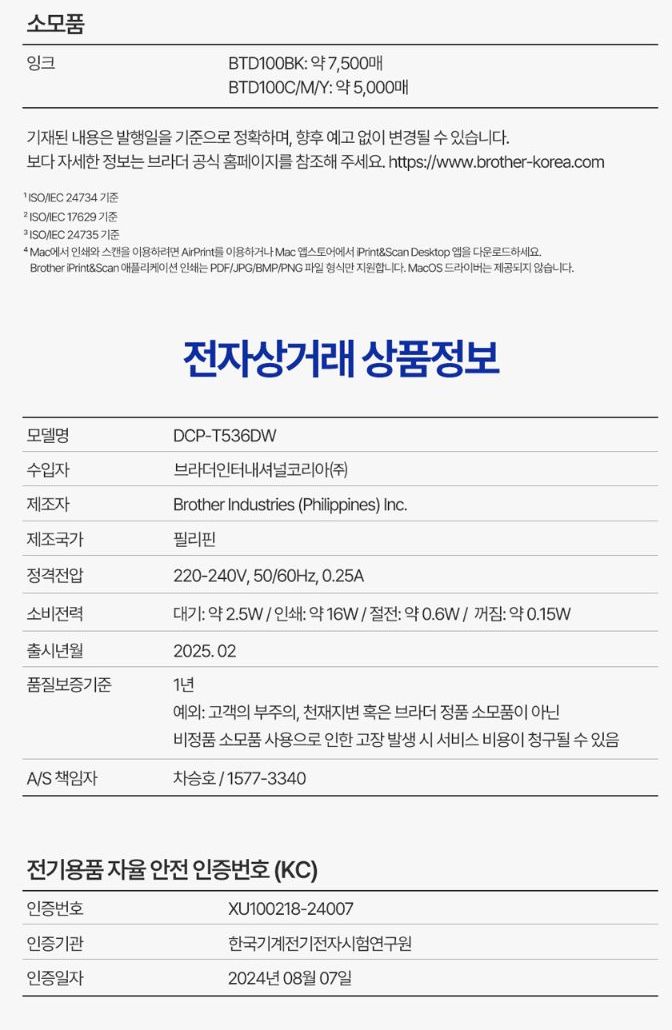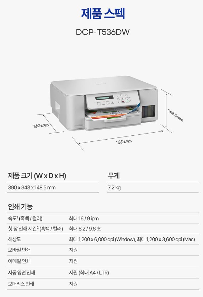 DCP-T536DW (잉크포함) - 브라더 공식 온라인 스토어