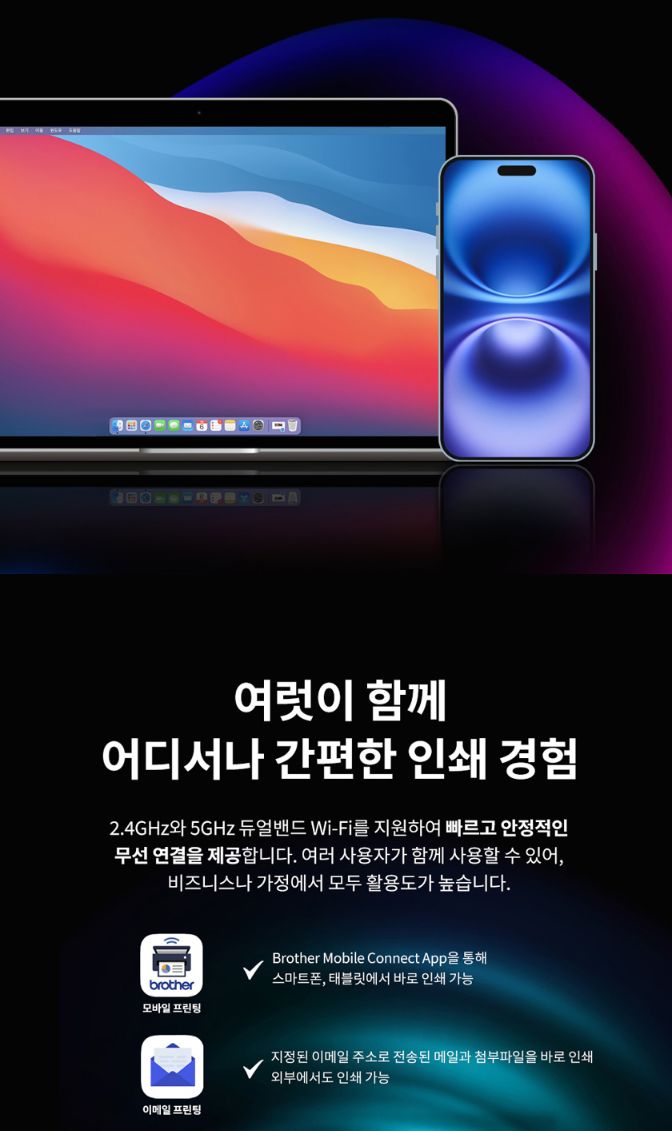 ㅡ 무선인쇄는 프린터에 연결하는 컴퓨터가 여러 대일 때, 그리고 스마트폰에서 프린터를 인식해 바로 인쇄할 때 필요하다.