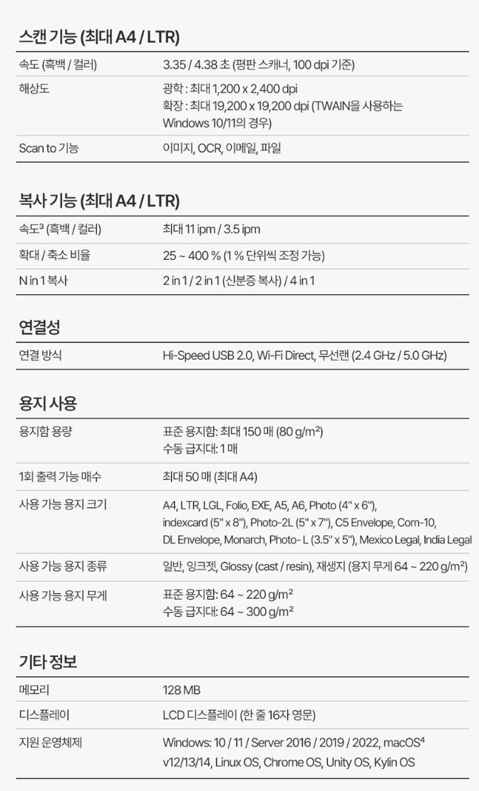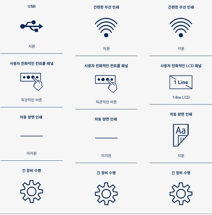 * 만약 양면인쇄없어도 되고 USB 포트 유선인쇄만 해도 상관없다면 훨씬 싼 모델도 있다.